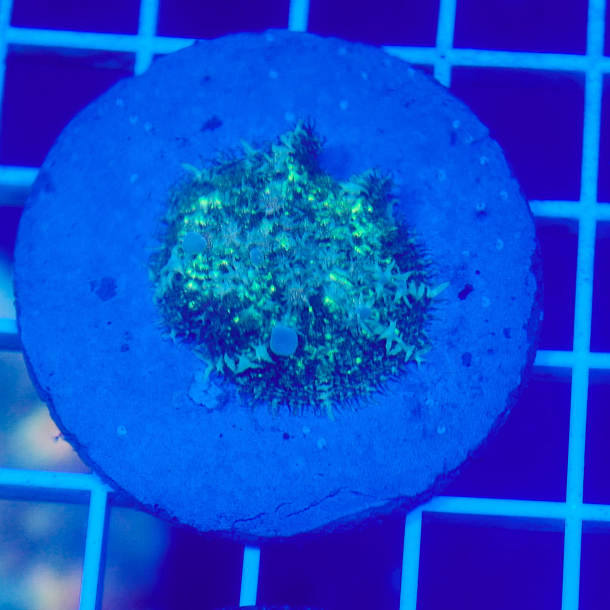 Under optimal conditions, bounce mushrooms display exaggerated, pearl-like bubbles that can range from subtle to extreme, giving them a sculptural, almost unreal appearance. Their glow under blue lighting makes them a true centerpiece coral, whether placed on the sandbed or allowed to attach naturally to rock.