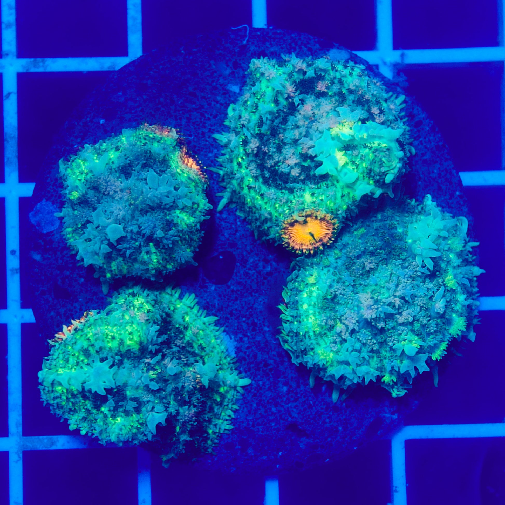 All photos are taken under Radion G6 Pro lighting with a predominantly blue spectrum and photographed using an orange lens to accurately represent coloration.