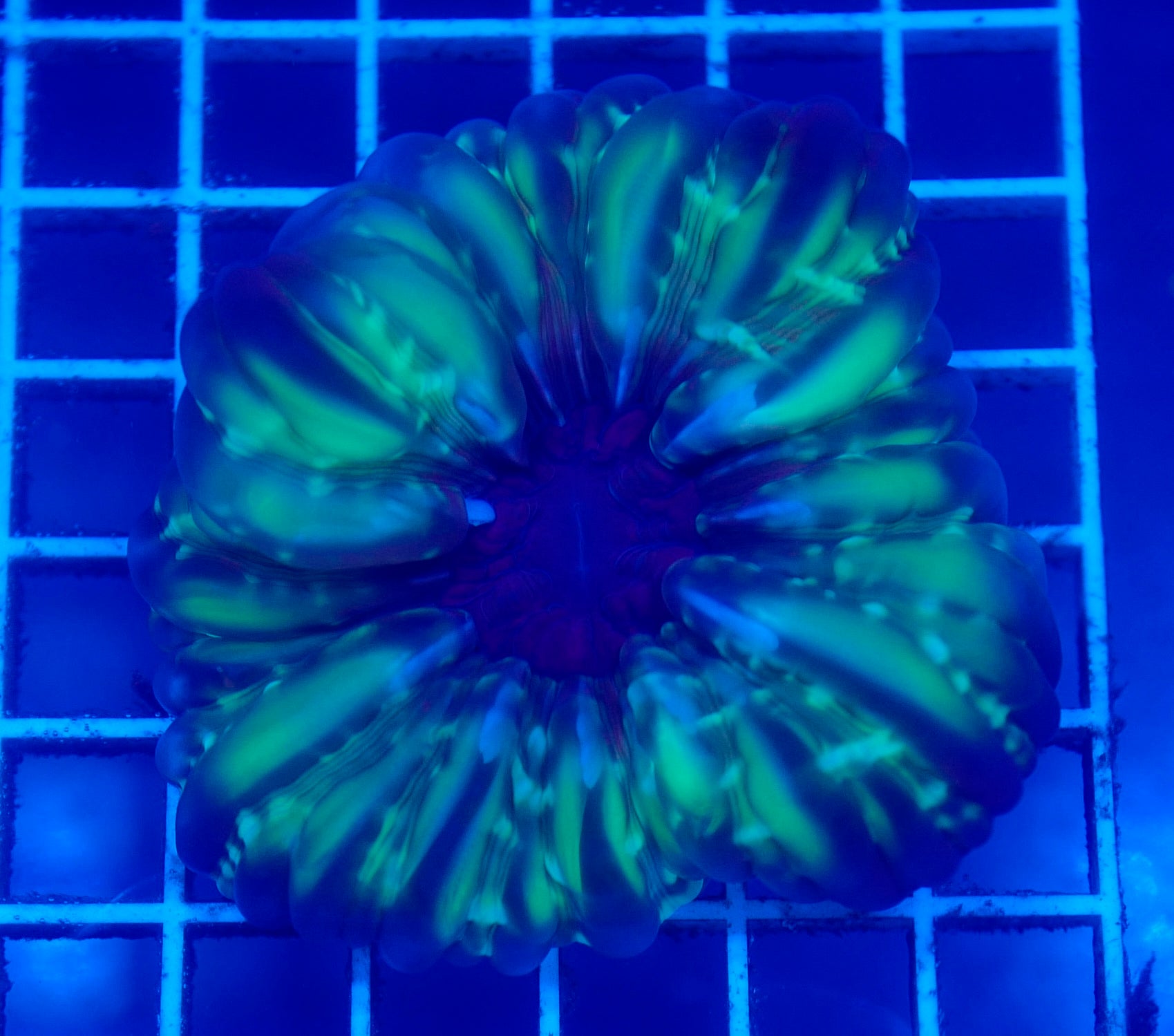 This Aussie Cynarina is a premium, large-polyp stony coral known for its intensely fleshy structure, luminous coloration, and bold presence in the reef. Featuring translucent, inflated tissue over a skeletal plate, Cynarina corals offer a unique visual texture — somewhere between bubble coral softness and scolymia depth — with gentle folds and natural gloss that amplifies light refraction.